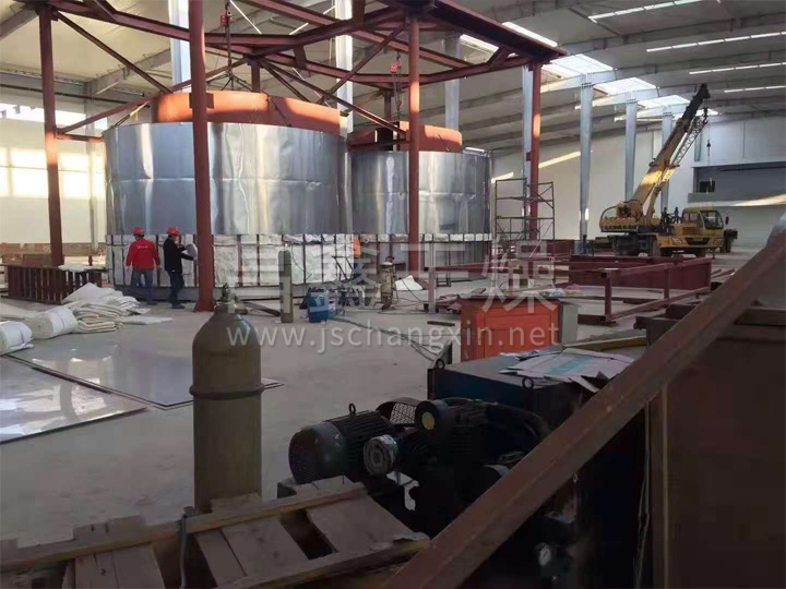 空气经过滤和加热,进入干燥器顶部空气分配器,热空气呈螺旋状均匀地进入干燥室。料液经塔体顶部的高速离心雾化器,(旋转)喷雾成极细微的雾状液珠,与热空气并流接触在极短的时间内可干燥为成品。成品连续地由干燥塔底部和旋风分离器中输出,废气由风机排空。